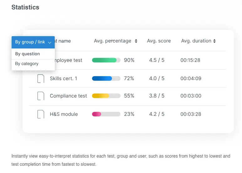 - 자동 채점 및 영역별 결과 통계 분석 자료 제공