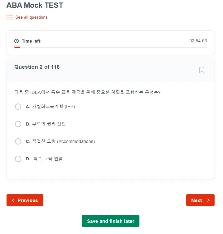 미국 BCBA전문가와 함께 ABALOGY에서 검증된 ABA Mock Test