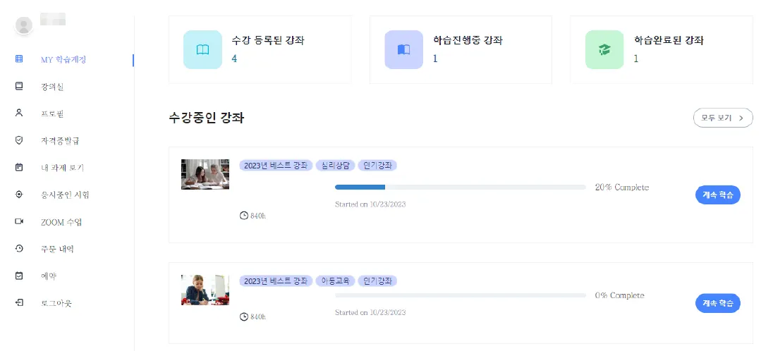 수강생분들이 쾌적한 환경에서 학습 할 수 있도록 최신 LMS 온라인 교육 시스템을 지원합니다.