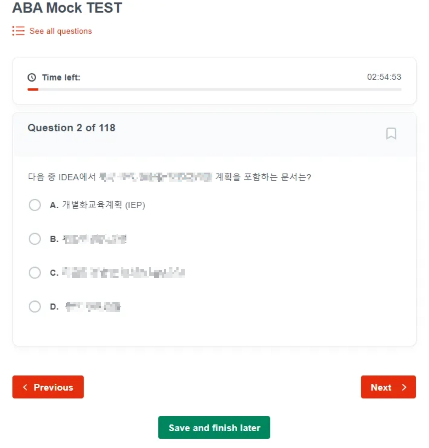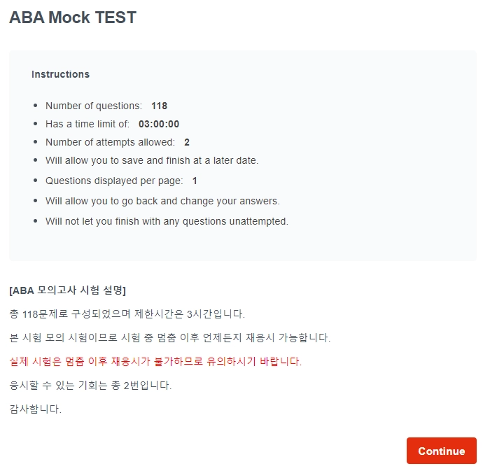 1. 한국어로 된 ABA 문제 118개 제공 (3시간)